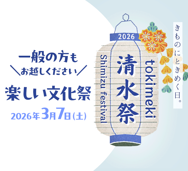学校法人清水学園は、開校から110年を迎え、今後も“日本の伝統であるきもの”の大切に未来へ伝えつつ、時代時代に合わせた“新しいきもの”を創造してまいります。