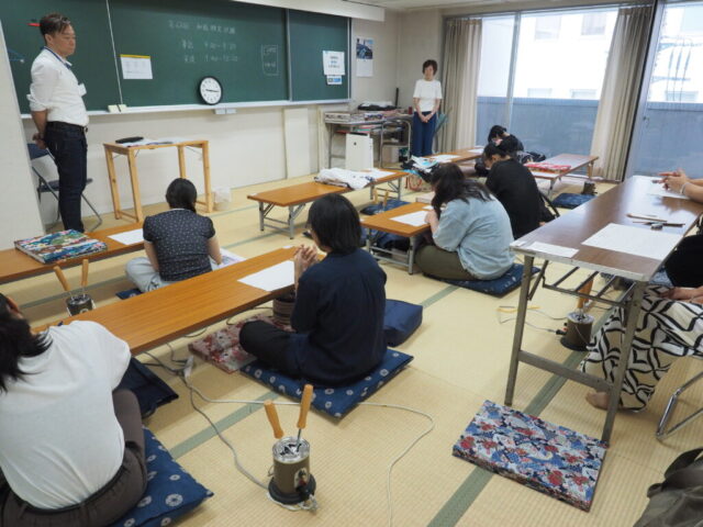 当日は本校の専門課程及び別科、和裁通信教育生の他、職業訓練校やカルチャーセンターで和裁を学ぶ方々が合格目指して筆記や実技試験にチャレンジしました。