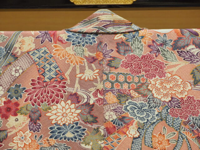 今回初めての縮緬地とうことで縫うのが大変だったそうですが、背中心も繰り越し揚げなども綺麗に縫えていますね。