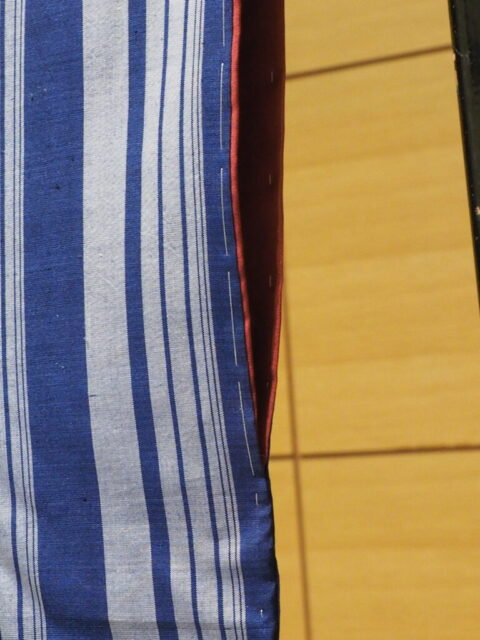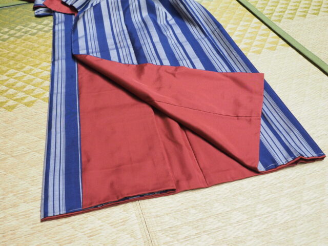八掛の色は先生のアドバイスでこの色にしたそうです。表地の青色ともマッチしていますね。