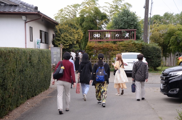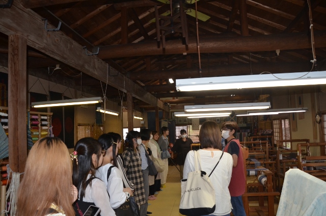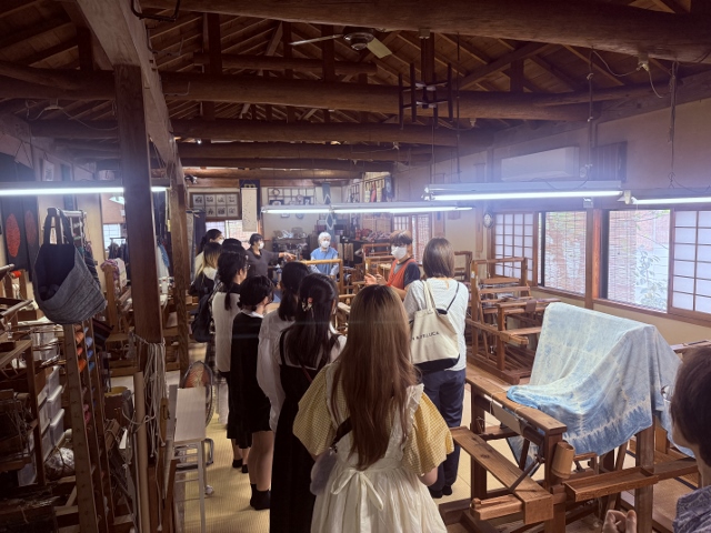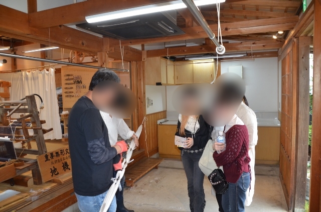 朝8時に学園を出発し、現地に10時半に到着。さっそく最初の目的地である紬の里・伝統工芸館を訪れました。