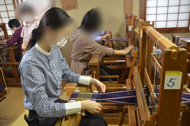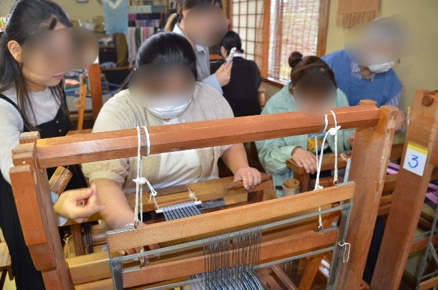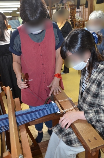 ほとんどの生徒さんにとって初めての機織り体験でしたが、織っていくうちにだんだんとコツがつかめてきたようです。