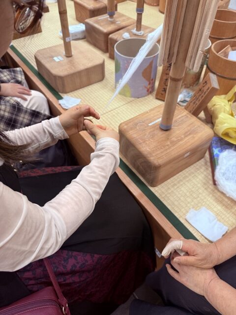 また真綿から紬糸を作る真綿引きや絣糸を作る糸括りなども経験させていただきました。