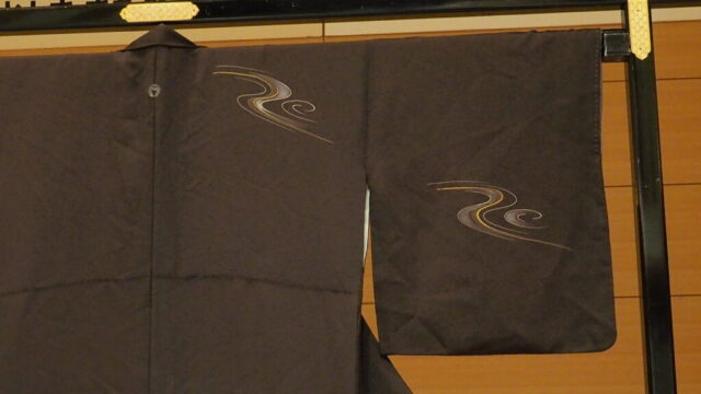 こちらの作品は母親からもらった訪問着を洗い張りに出して自分の寸法に仕立て直したものです。服装の世界では「お直し」とも言います。