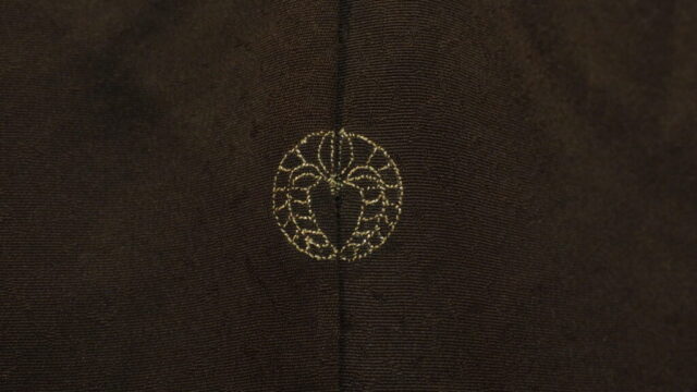 このような背紋を合わせることを「紋合わせ」といいます。背紋はちょうどきものの中心部に位置しますので、左右の後ろ身頃に半分ずつ紋がくるかたちになります。これをきちんと合わせて一つの紋にする作業が紋合わせです。
