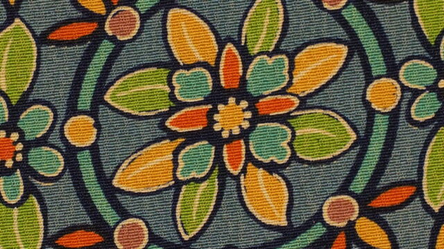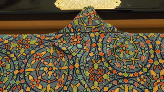花更紗文様は古典的な柄の一つですが、更紗なのでどこかエキゾチックですね。ステンドグラスみたいという声もあったそうですが、たしかにステンドグラスに見えますね。