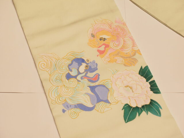 太鼓柄の部分が「唐獅子牡丹文様」になっています。シブいですね。