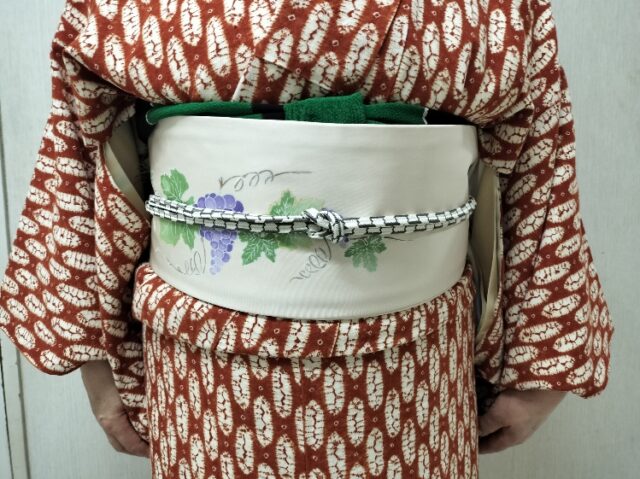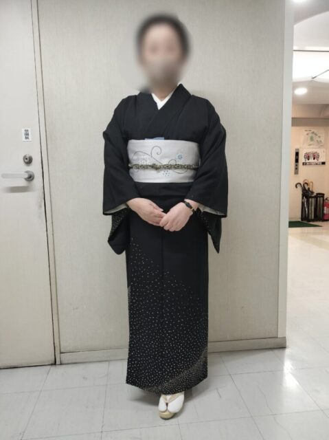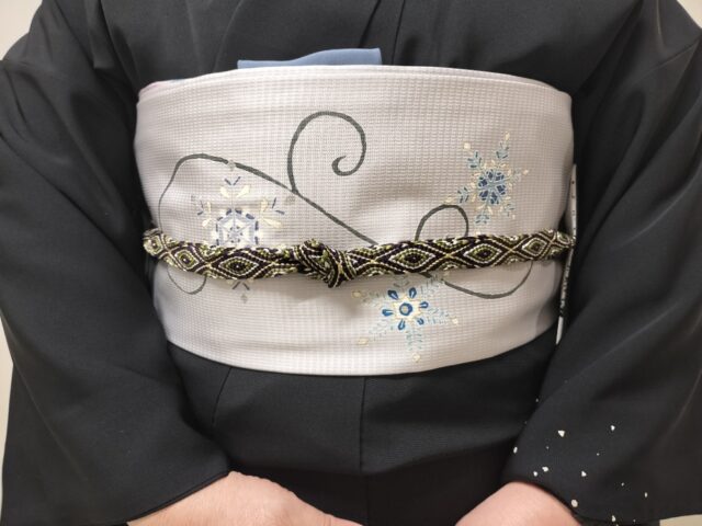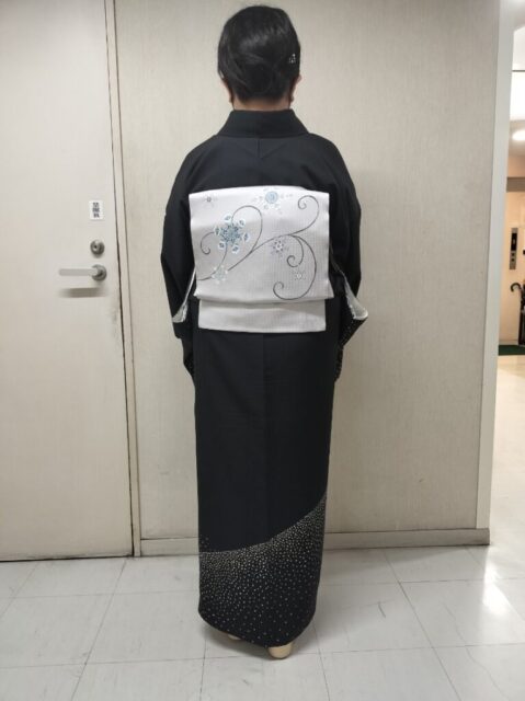 今回は齋野さんが染めた帯を応援の意味を込めて購入した着装の先生方が実際に齋野さんの作品を締めたところを撮影させていただきました。早速ご覧いただきましょう。