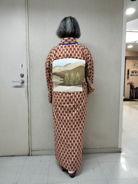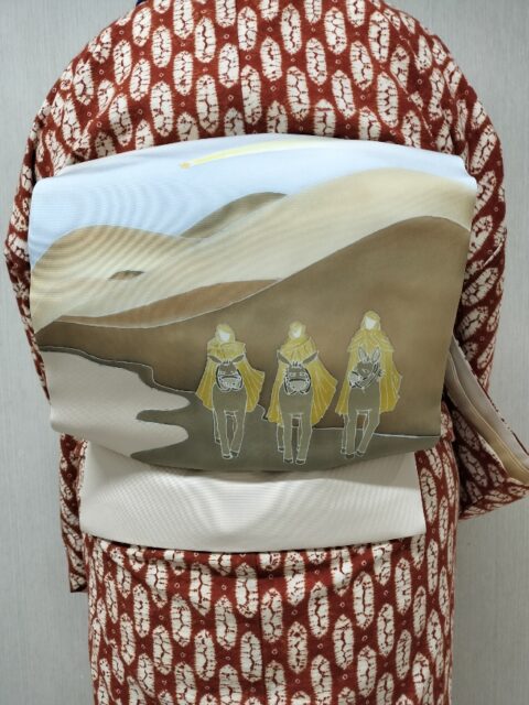 太鼓柄は砂漠を往く東方の三賢者(三博士)でしょうか。先生のリクエストだそうです。