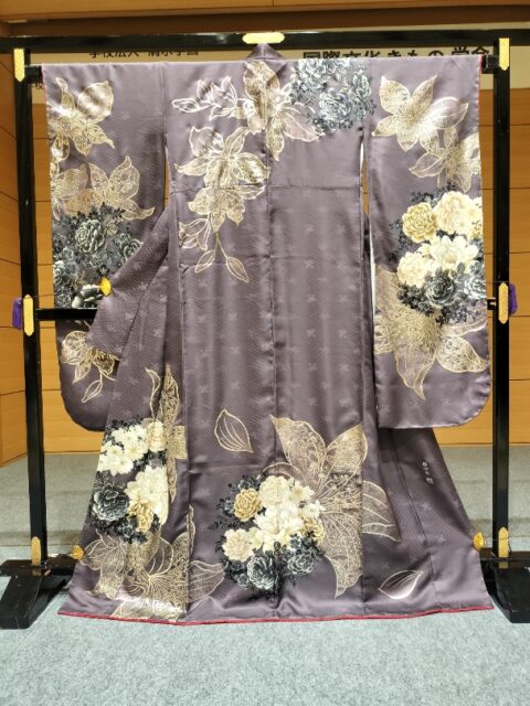 本日はきもの技術科2年生の生徒さんが自分の成人式用に仕立てた振袖をご紹介したいと思います。それでは早速作品をご覧いただきましょう。