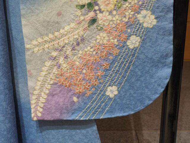 前回は自分の成人式用の振袖を仕立てたきもの芸術科2年の生徒さんの作品をご紹介いたしましたが、今回は同じく振袖を仕立てたきもの芸術科2年の生徒さんの作品をご紹介いたします。
