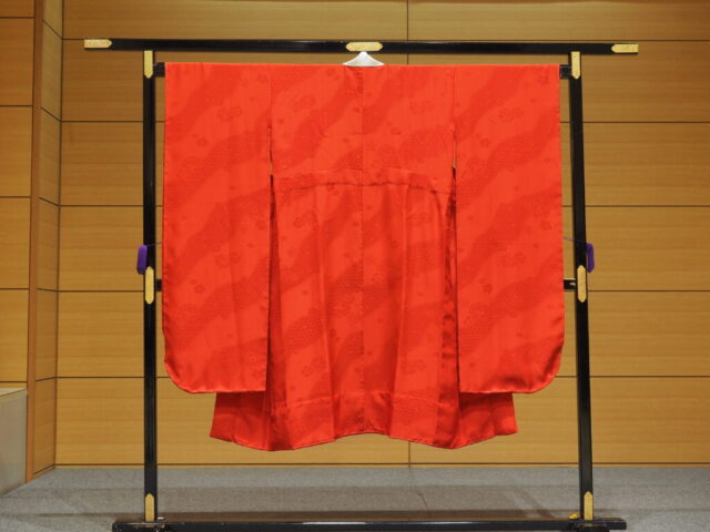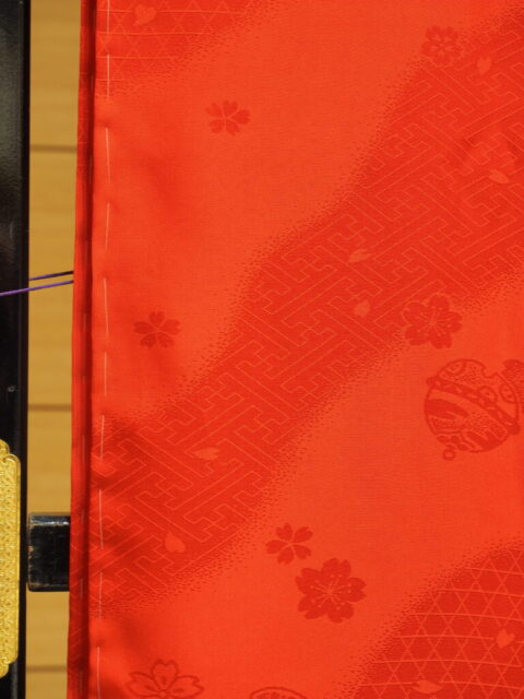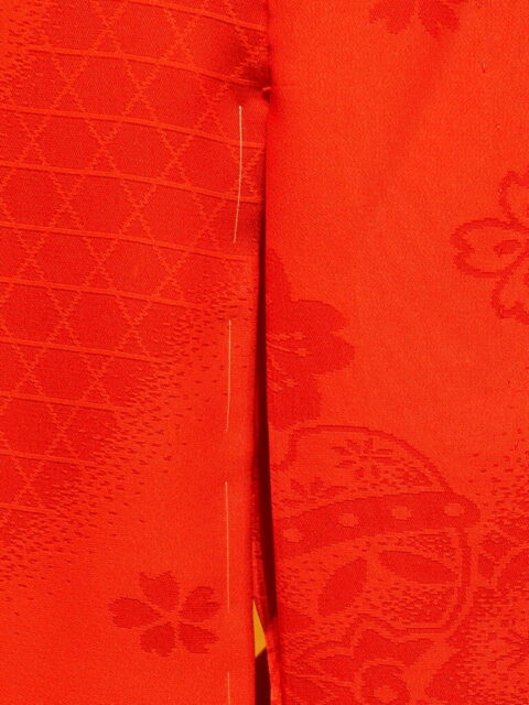 以前仕立てた振袖の下に着る鮮やかな緋色の長襦袢です。振袖の方はこちらをご覧下さい。