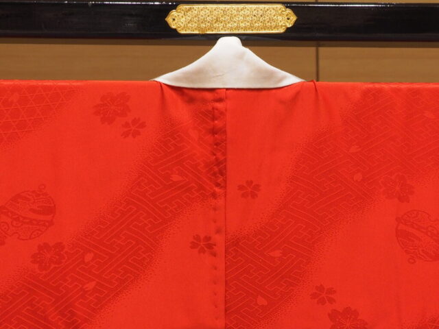 本日はきもの技術科2年の生徒さんが仕立てた振袖用の長襦袢をご紹介したいと思います。