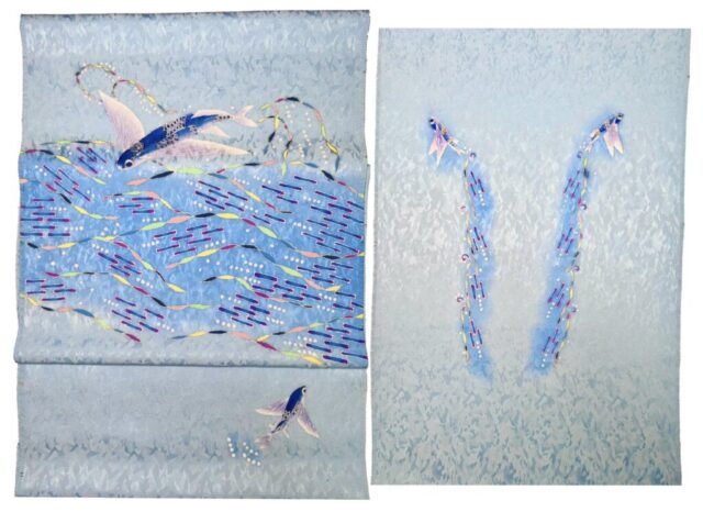 秋田さんは本校を卒業後、株式会社ユキヤで未来の友禅界を担うべく日々修行中の若き染色作家として活躍中です。