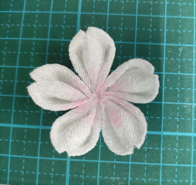 最初の生徒さんはつまみ細工で花とかわいい袋物を作りました。