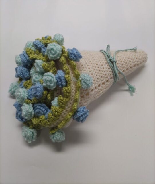 続いての作品も1年生の作品です。以前に同じようなブランケットを作った時にも学園のインスタでご紹介しましたが、それはプレゼントしてしまったとのことで同じような作品をもう一つ作ったそうです。