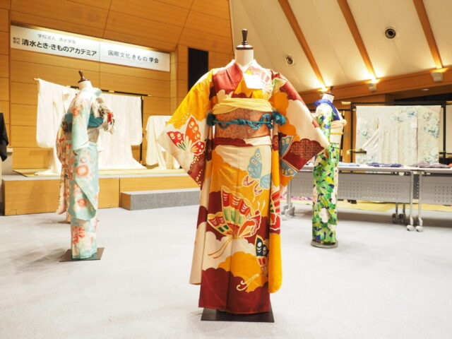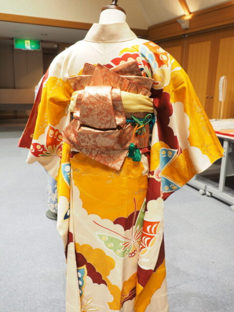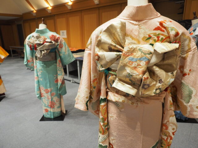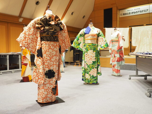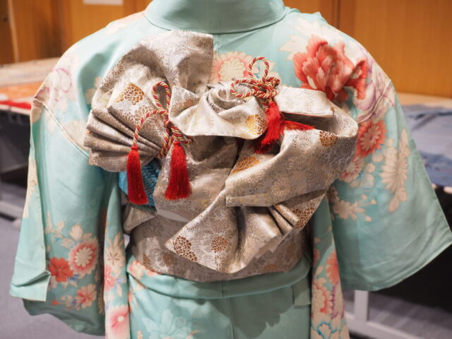 帯結びはきもの芸術科、きもの技術科の2年生の作品が中心でしたが、2年間での確かな成長がうかがえました。