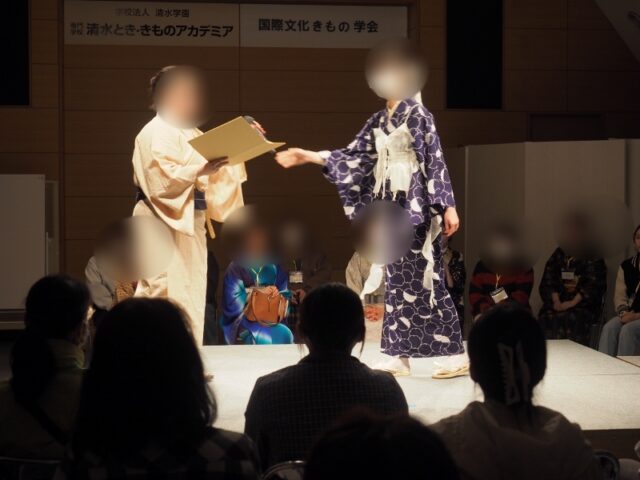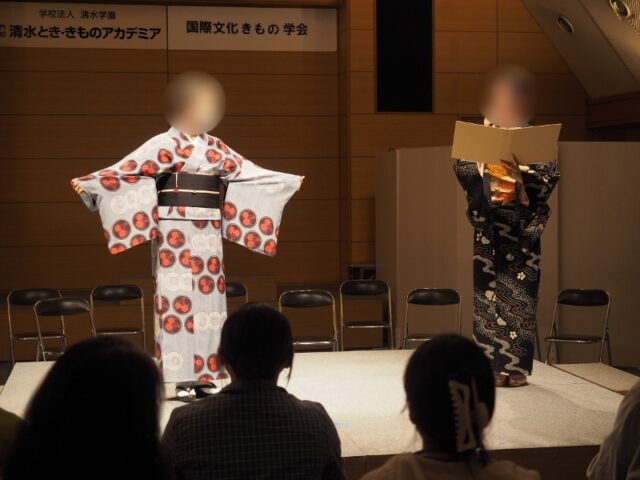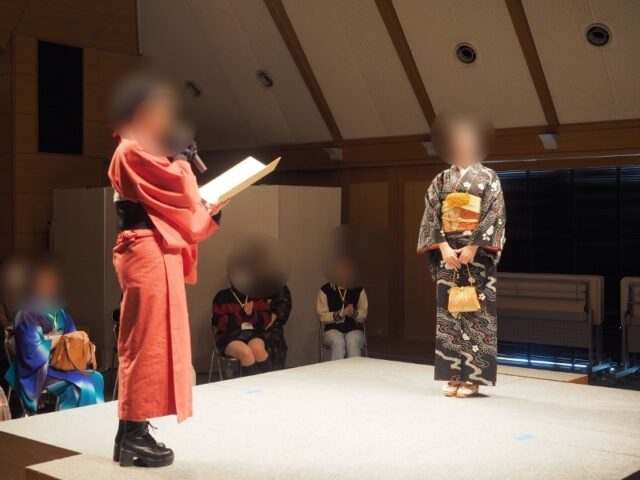 お二人とも授業で制作した創作きものを身にまとってのステージングでした。