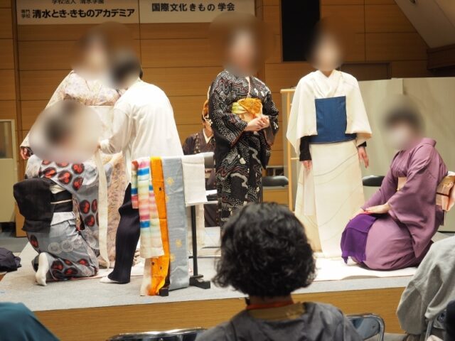 生徒さん達のショーに続いて先生方による反物着付けのお話です。