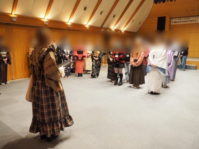 ランウェイを歩いた後は一人一人リレー形式で着ているきもののコメントを読み上げて作品のポイントなどを紹介していきました。「ひととせ」とは主に一年や一年間を意味する言葉ですが、まさに入学してから一年間の成長がうかがえるステージでした。