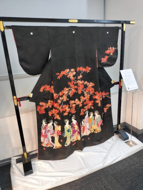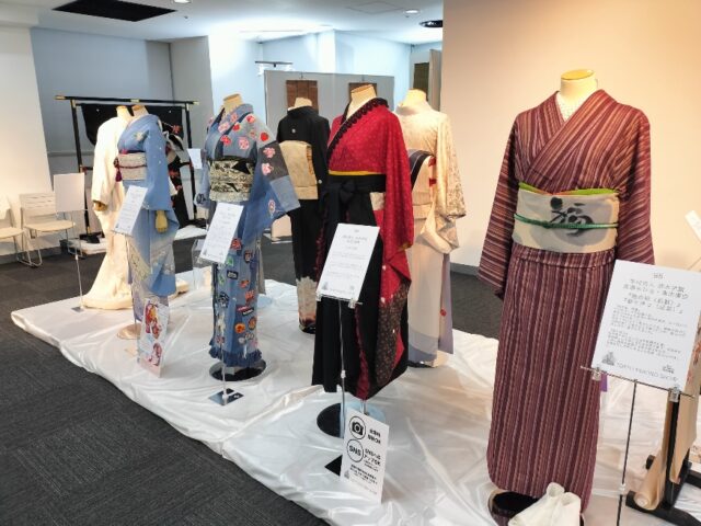 本校は会場の一つであるサンライズビルで開催されたキモノスタイル展で本校生徒の作品の他、付属施設のきもの芸術館で所蔵している浮世絵と清水ときデザインきものを展示させていただきました。