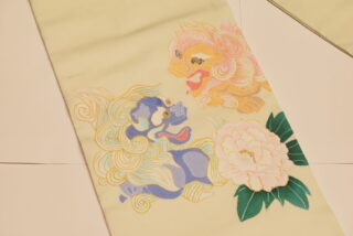 きもの芸術科2年の生徒さんが自分で染めて仕立てた名古屋帯等が完成しました(生徒の作品)